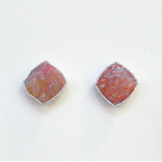 Mixed media, resin and sterling silver stud earrings.