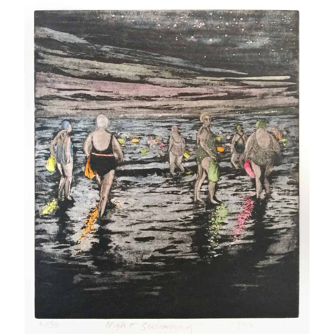 Framed original hand tinted drypoint