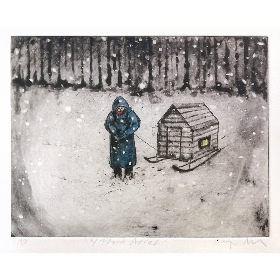 Framed original hand tinted drypoint