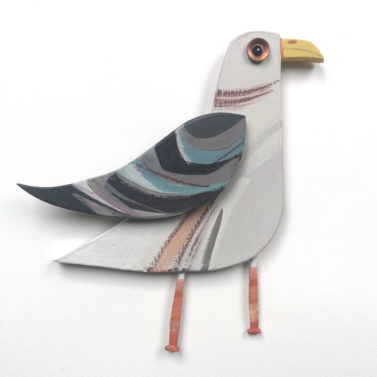 Painted driftwood and mixed media sculpture (Includes fixture for wall hanging)