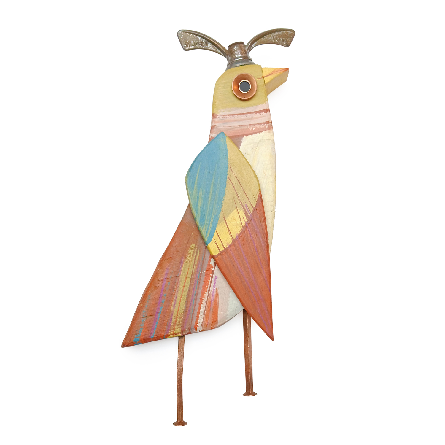 Painted driftwood and mixed media sculpture (Includes fixture for wall hanging)