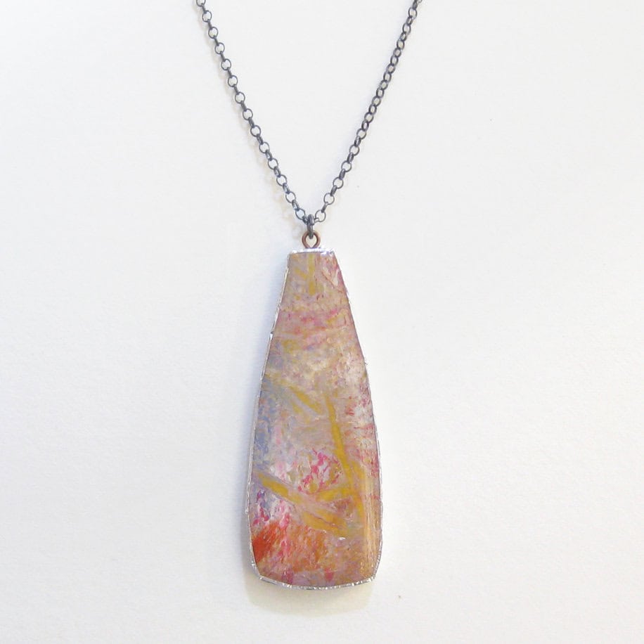 Mixed media, resin and sterling silver pendant with an oxidised silver chain.