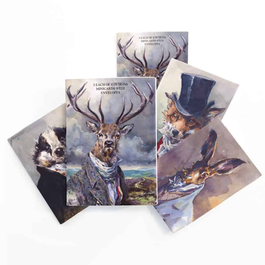 Pack of 12 minicards with white envelopes, with 3 each of 4 designs.